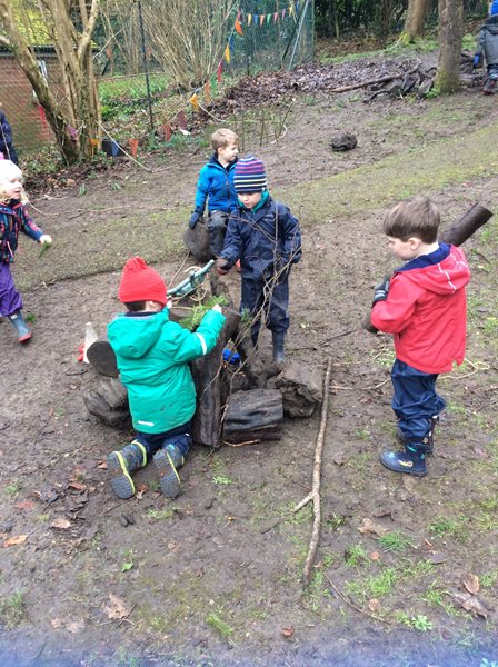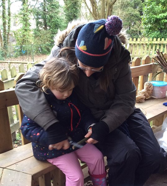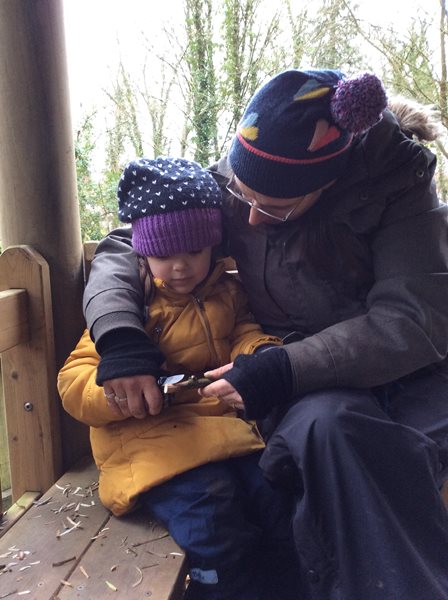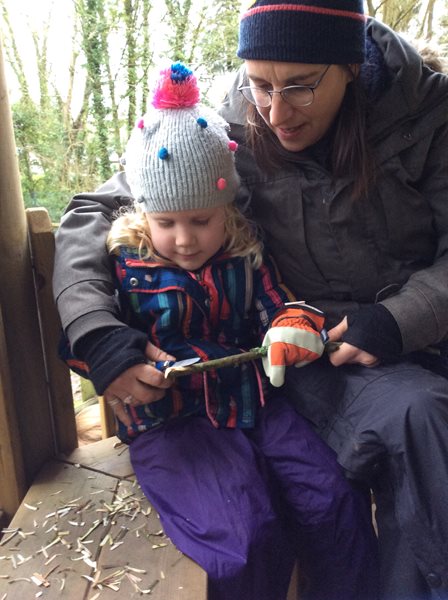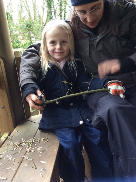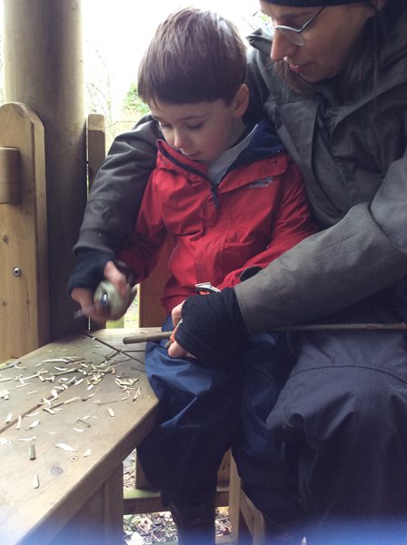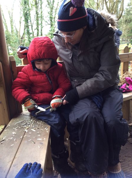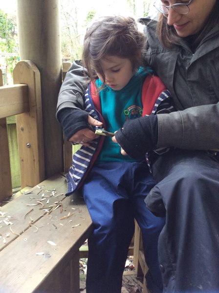 Rabbit class learn how to whittle sticks and use them to build a protective fence around our spring bulbs