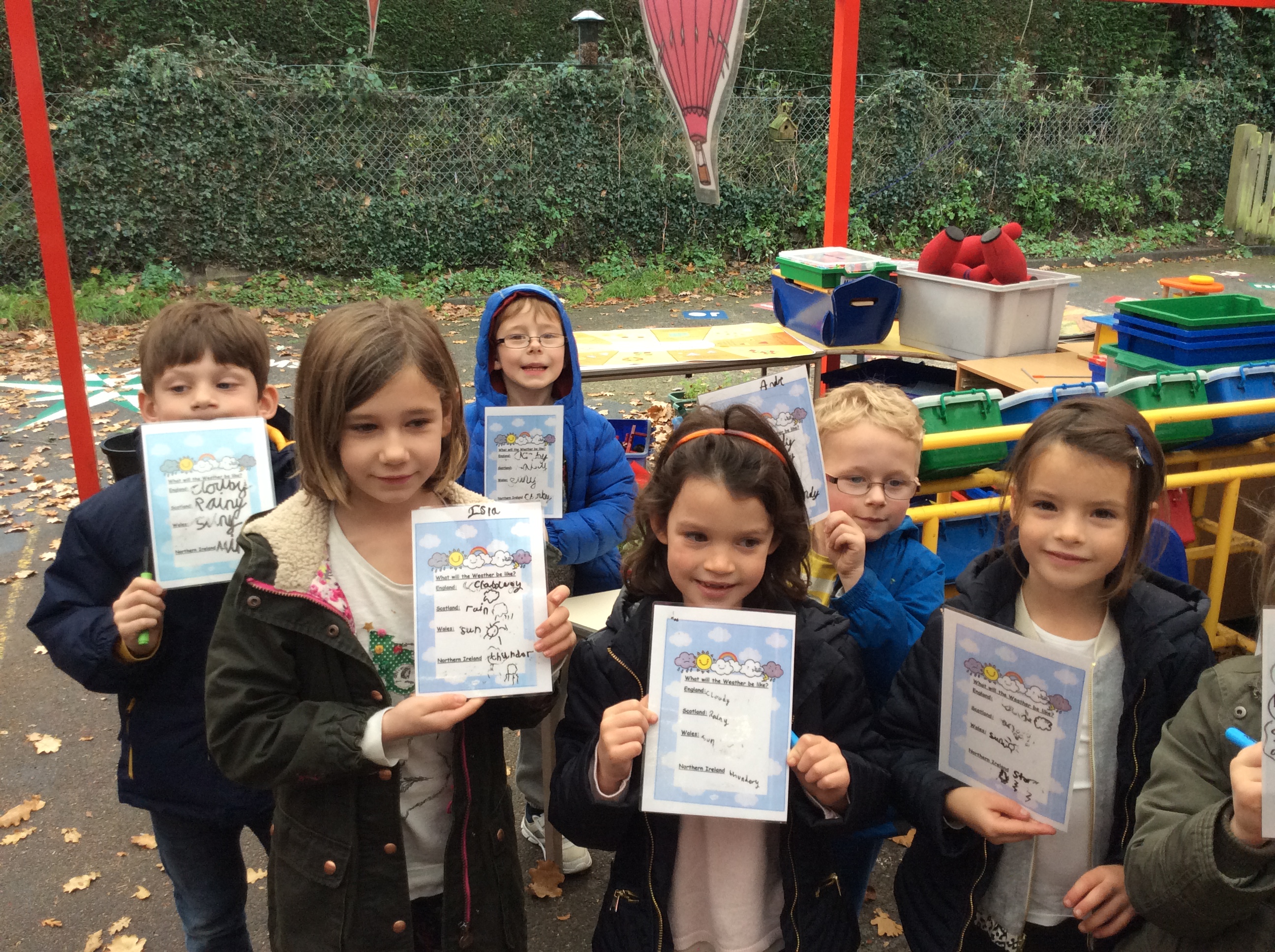 As part of their daily independent activities the children have enjoyed being weather forecasters and have been using the map of the British Isles to present their weather to others.