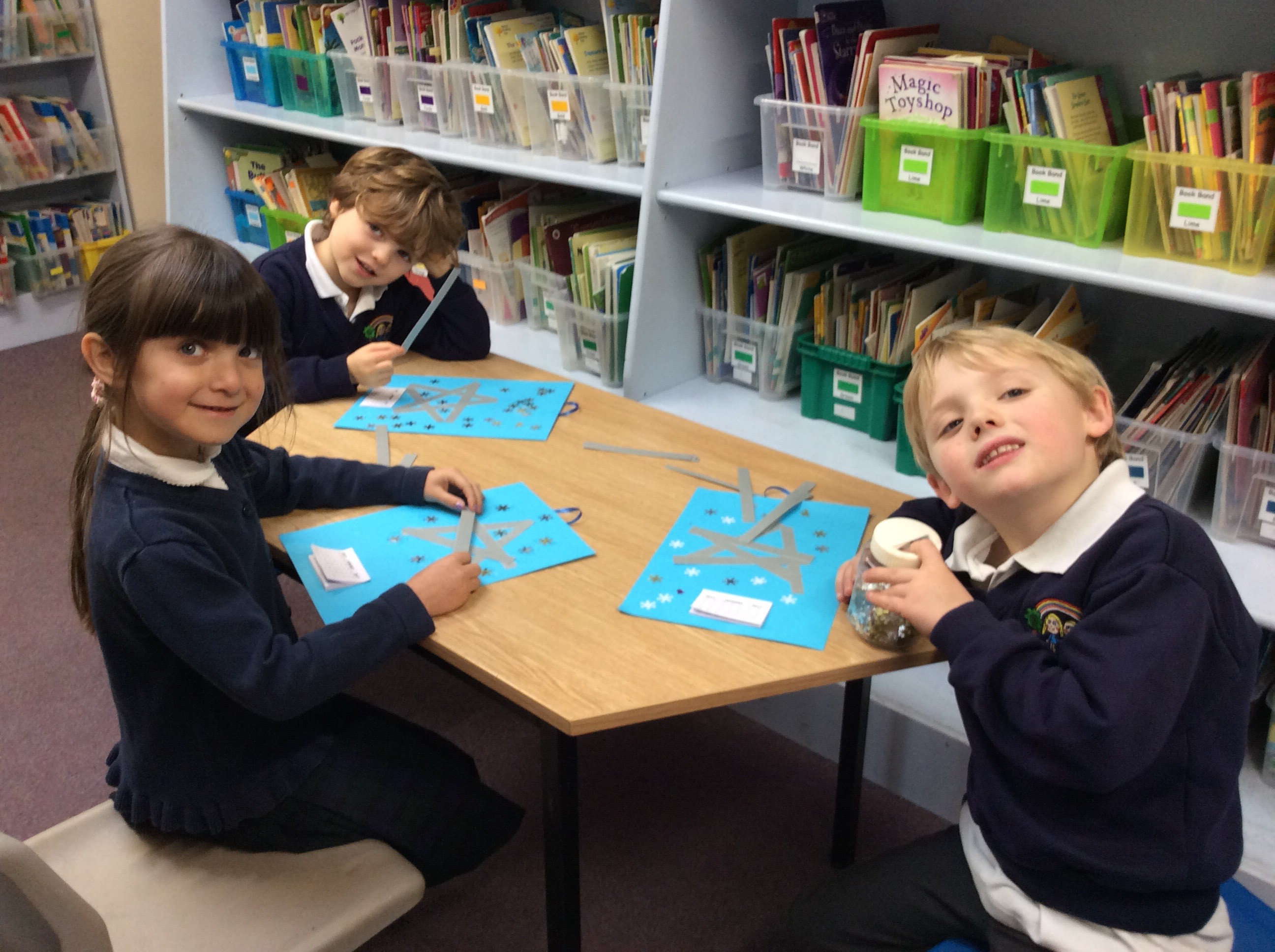 Fox Class talked a lot this week about the Nativity Story and why we receive presents. We made a star with silver paper strips and decorated it fo our calendar.