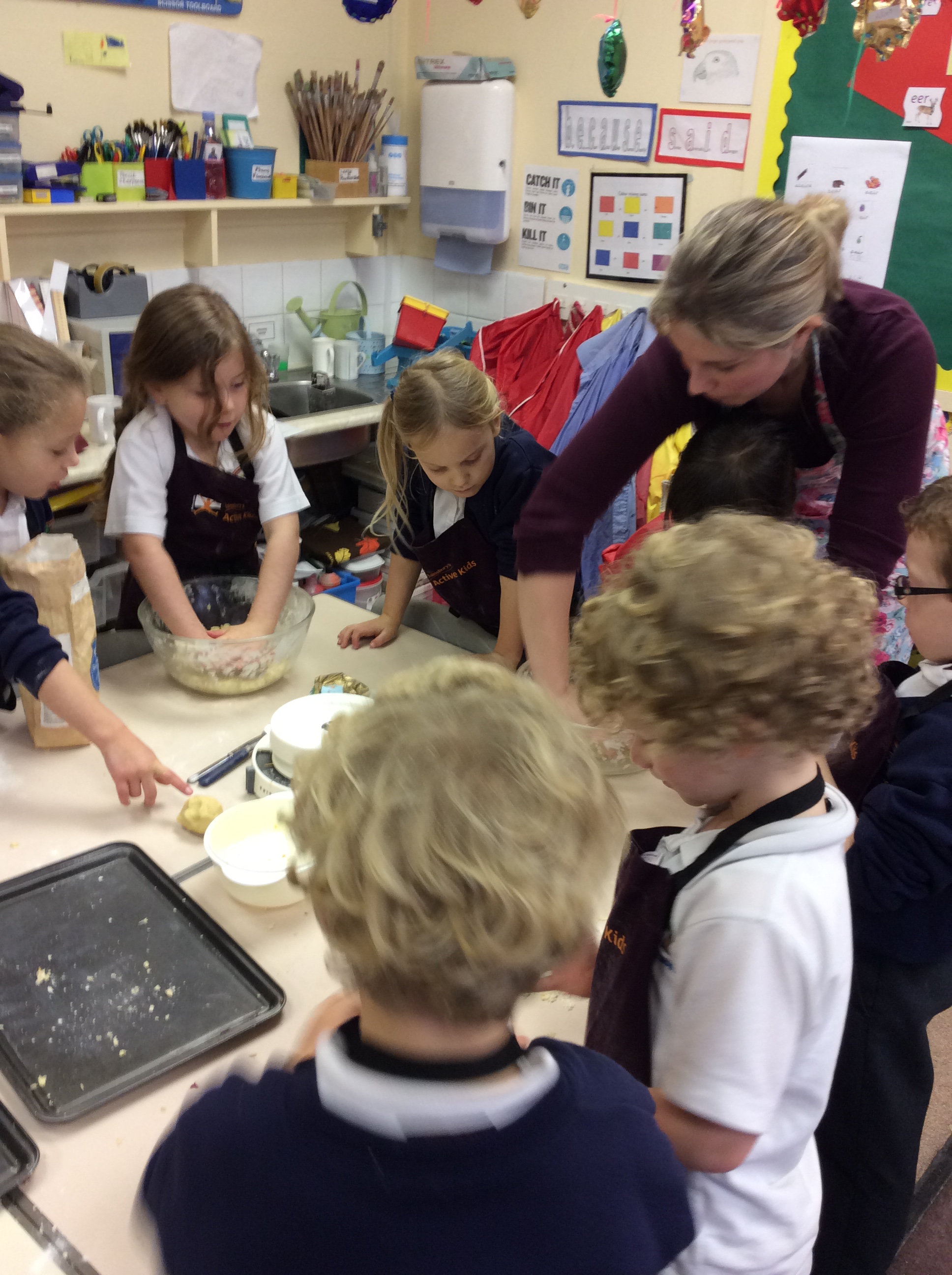We measured out the ingredients and used sharing into groups, which we had been learning about in maths, to make sure everyone received the same amount of dough.