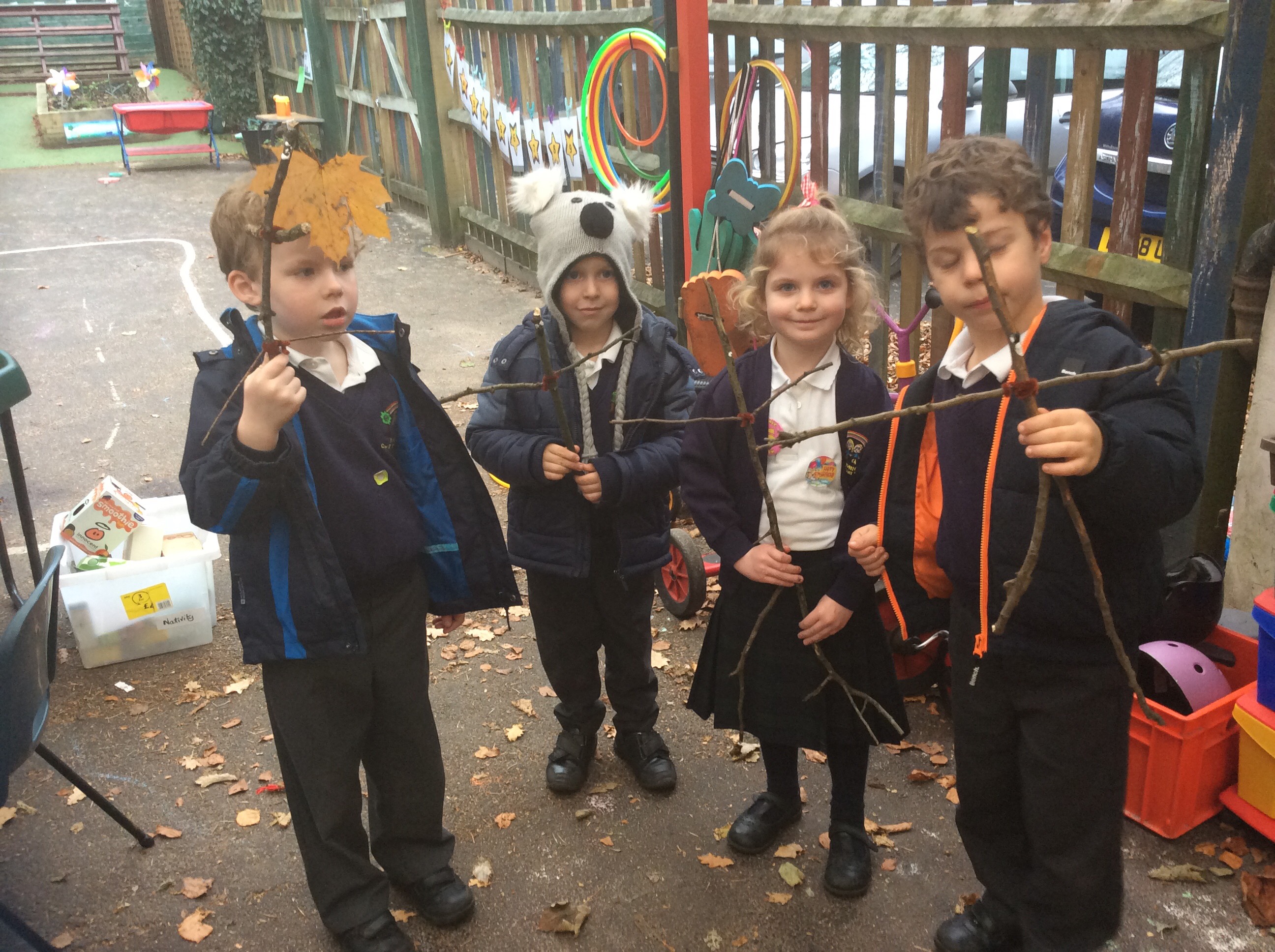 We read the story "Stick Man" then explored the outside classroom to find the perfect sticks to make our own stick person. We had to think about size and shape. We also had to "stick at it" when it came to joining the parts together.