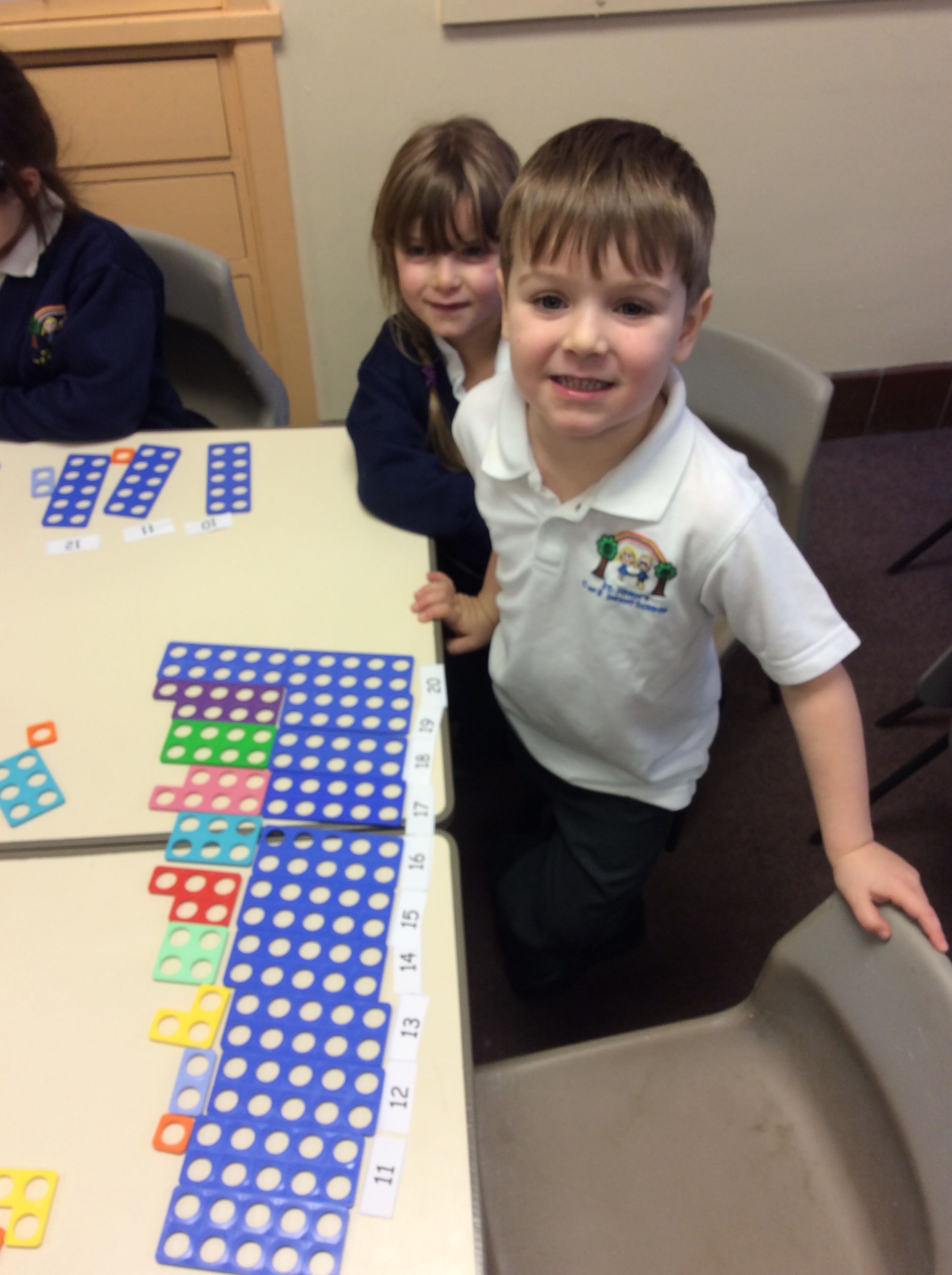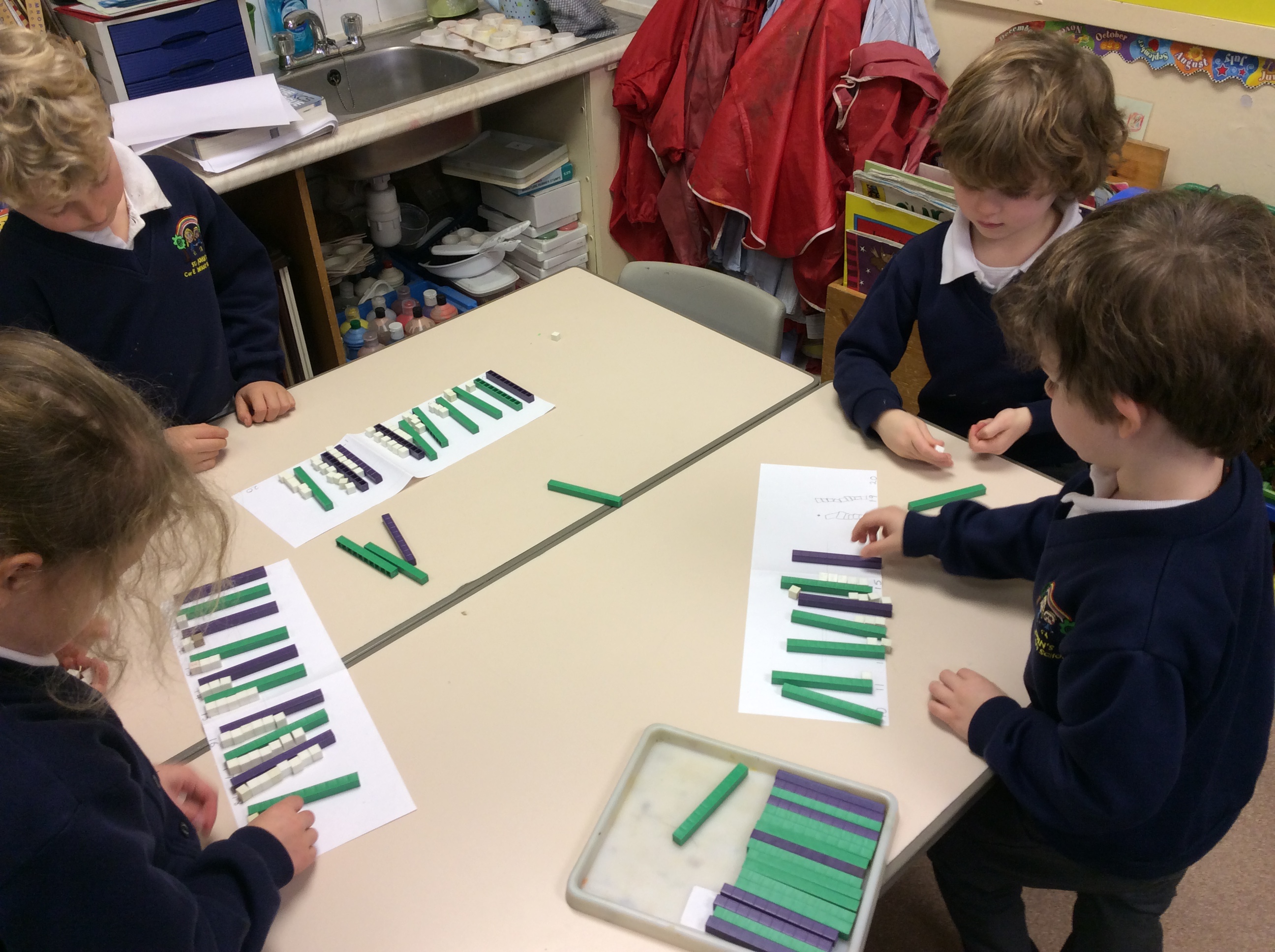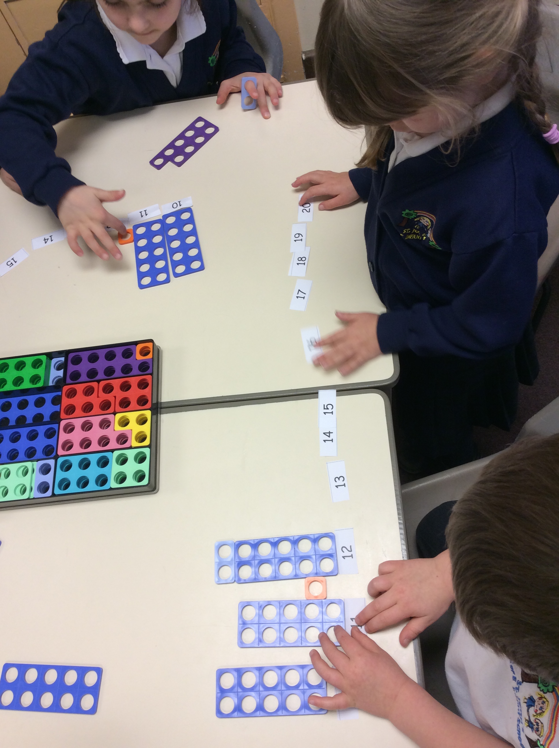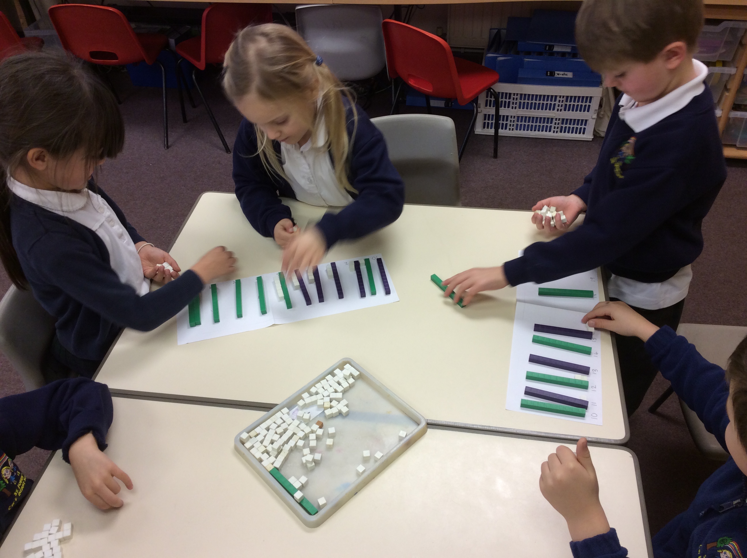 Working with a partner, we used numicon and Base 10 to make a number line of two-digit numbers.