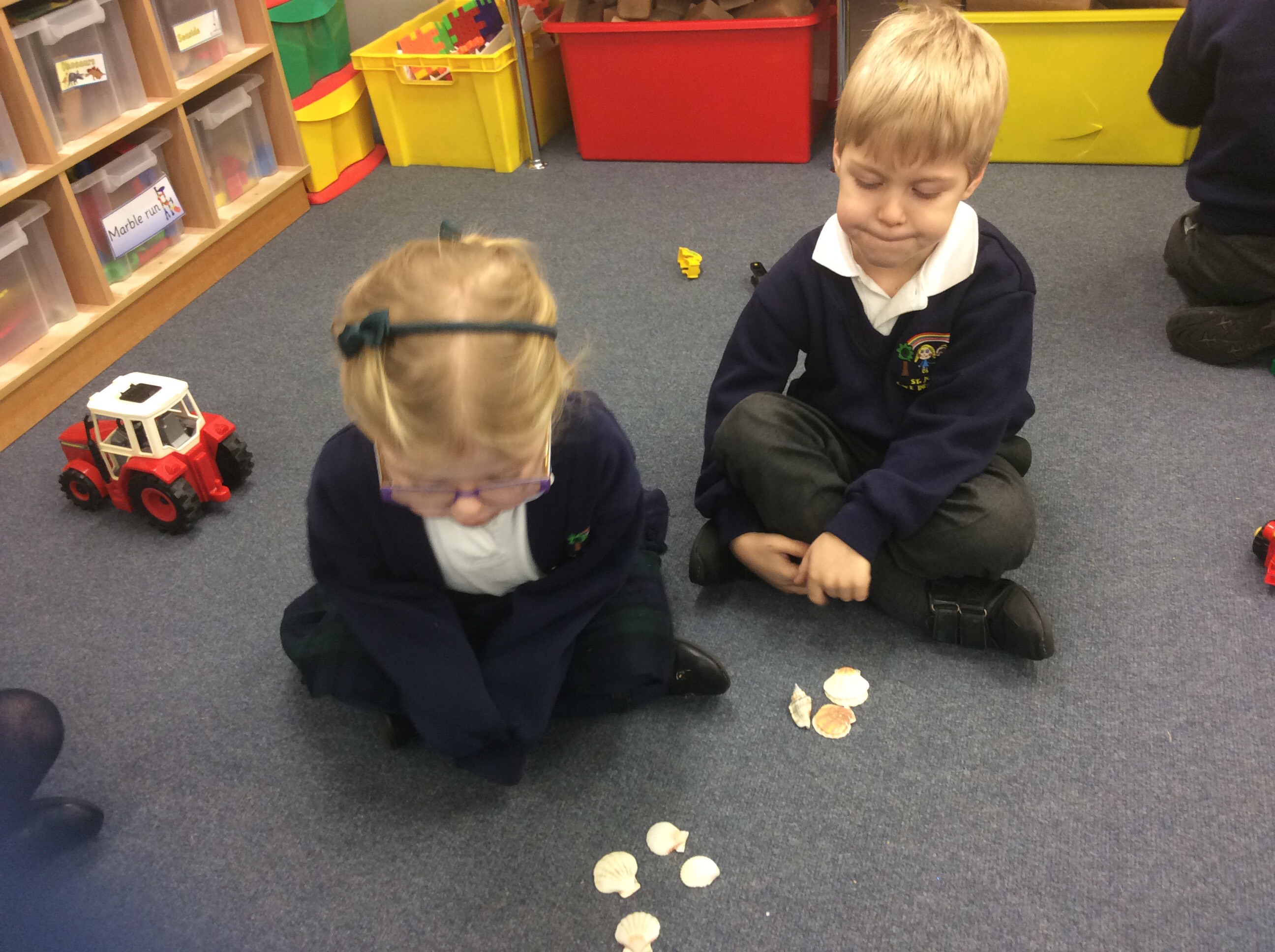 We have really taken our time learning "sh" this week because there is so much to learn. We have been on shape hunts and have shared shells fairly between two.